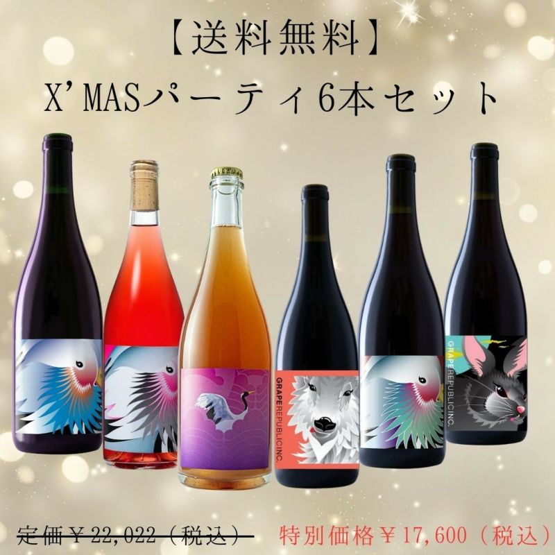 クリスマスパーティ用に厳選した6本セット。この6本があれば、クリスマスパーティが最大限盛り上がること間違いなし。今オススメの微発泡、白ワイン、オレンジワイン、ロゼワイン、赤ワイン2本をチョイスしました。送料無料&超特価のセットですので、是非お早めにご注文くださいませ!