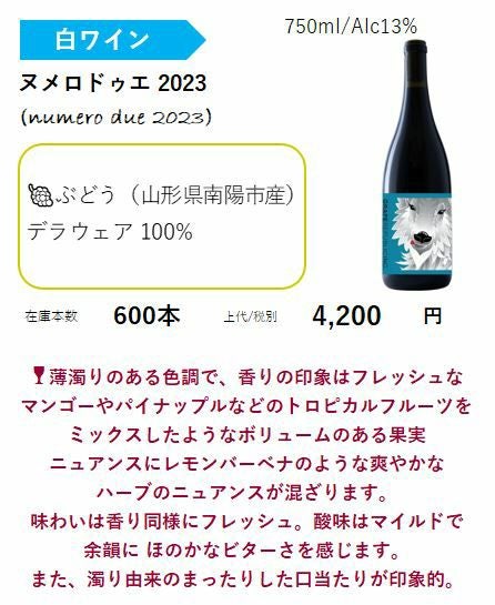 ●自社畑 白ワイン【ヌメロ ドゥエ 2023 (numero due 2023)】